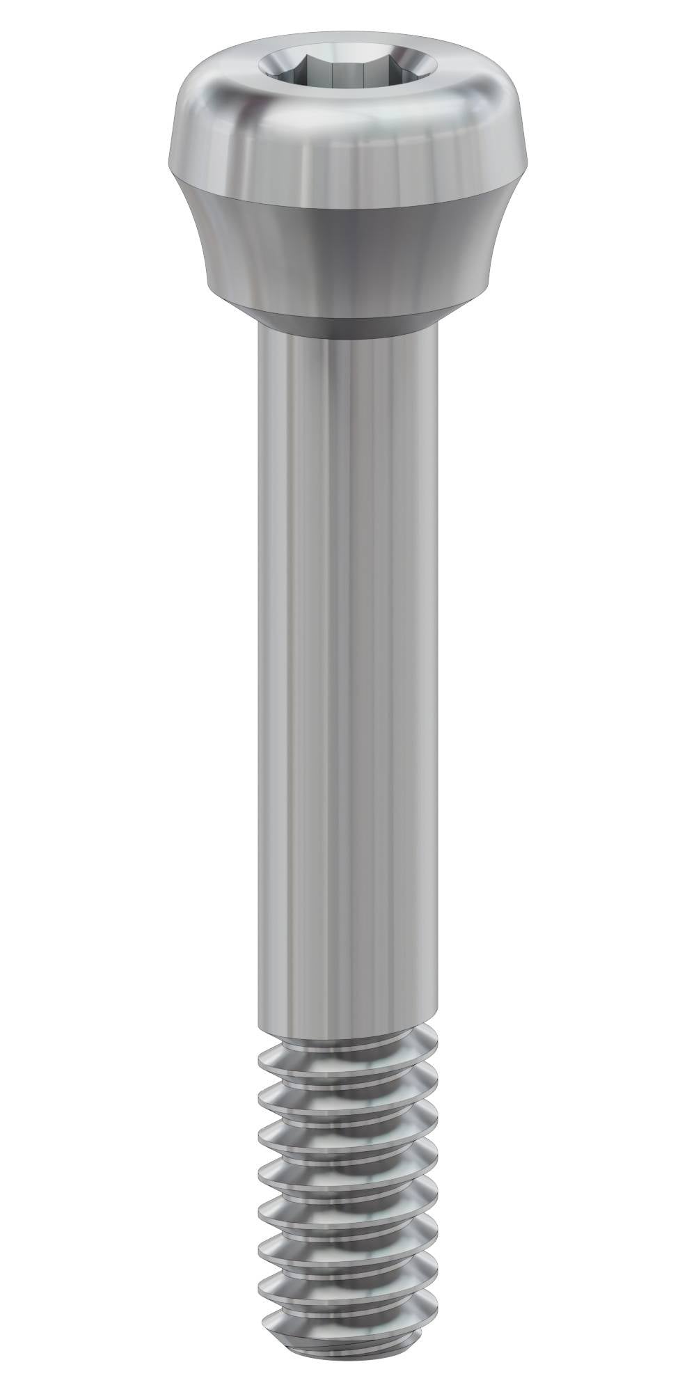 The Impression coping screw, closed tray, multi-unit level is a biocompatible titanium fixation screw specifically designed for use with multi-unit level impression copings in closed tray impression techniques. It ensures stable connection between the coping and the multi-unit platform, allowing for accurate transfer of position and angulation during final prosthetic planning.