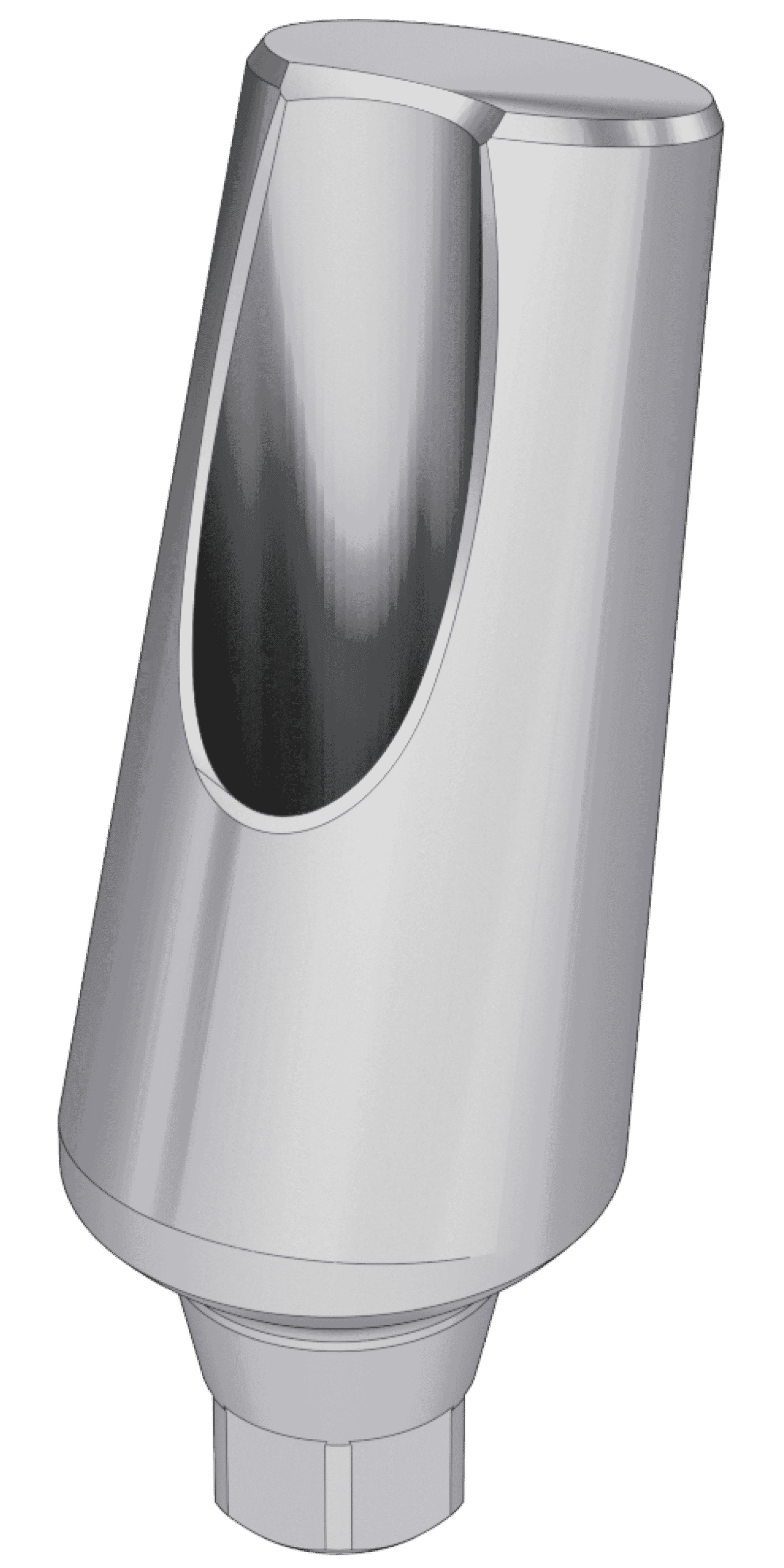 - Angled form: Enables angular correction for non-ideal implant placement.