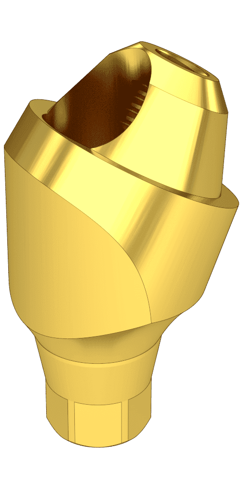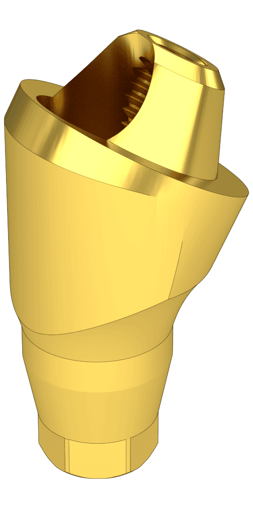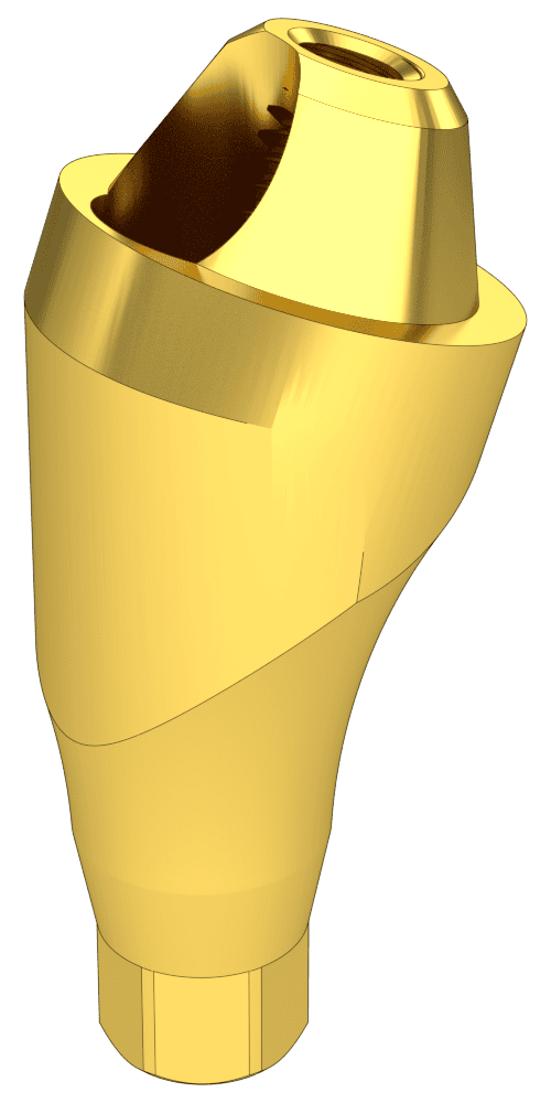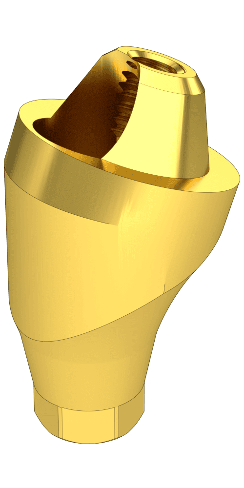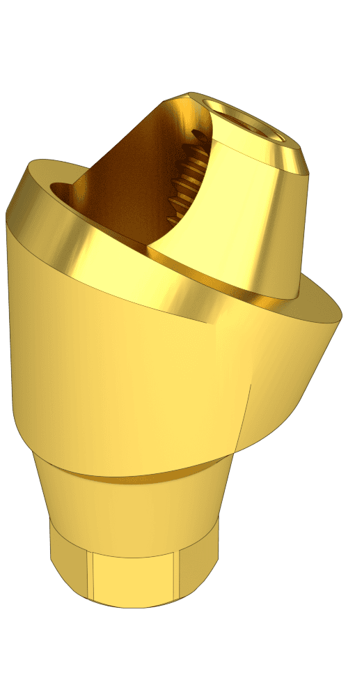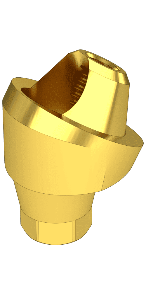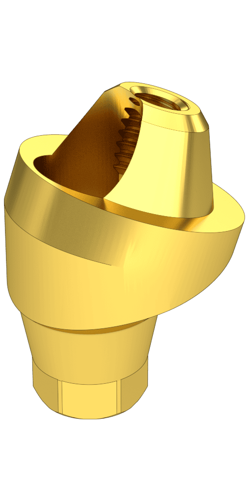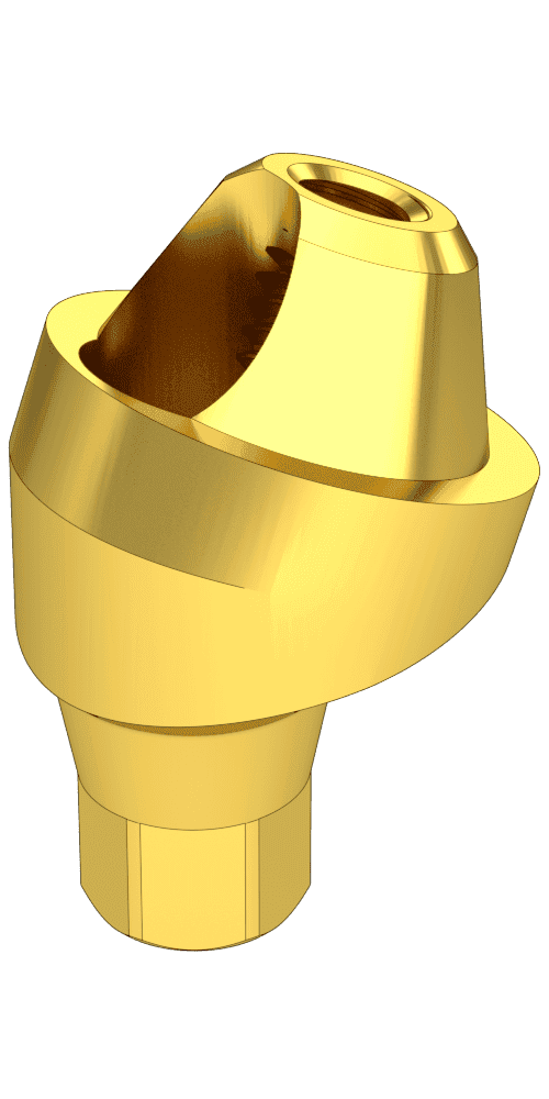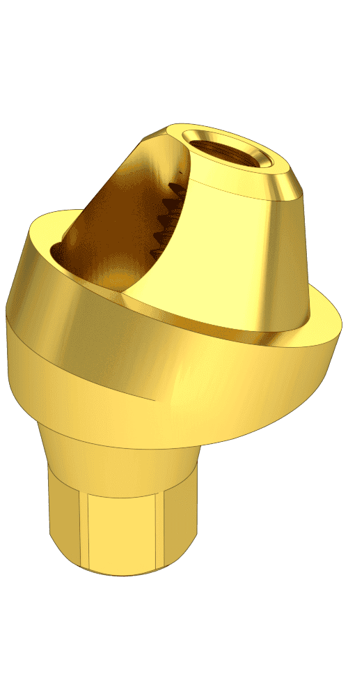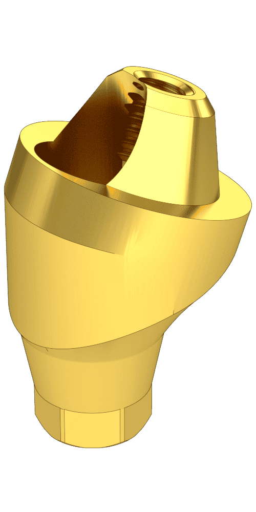 An intermediate piece designed for large angular misalignments (20°/30°). It can be fixed to the implant with a retainer screw and the prosthesis can be fixed to the screw thread in the abutment cone with a Multi-unit abutment screw.