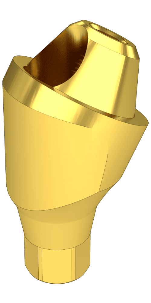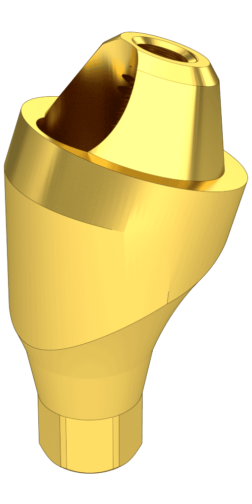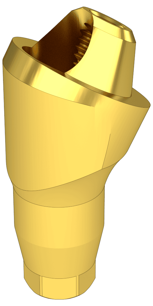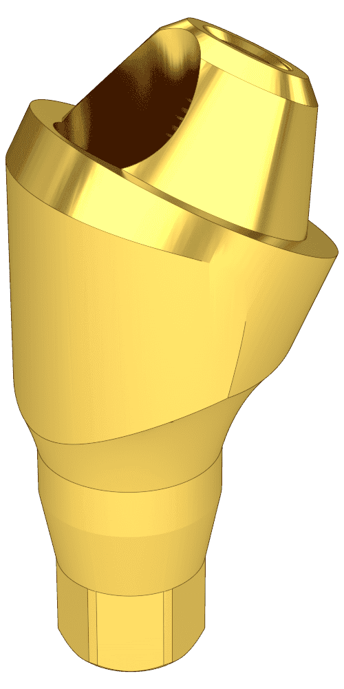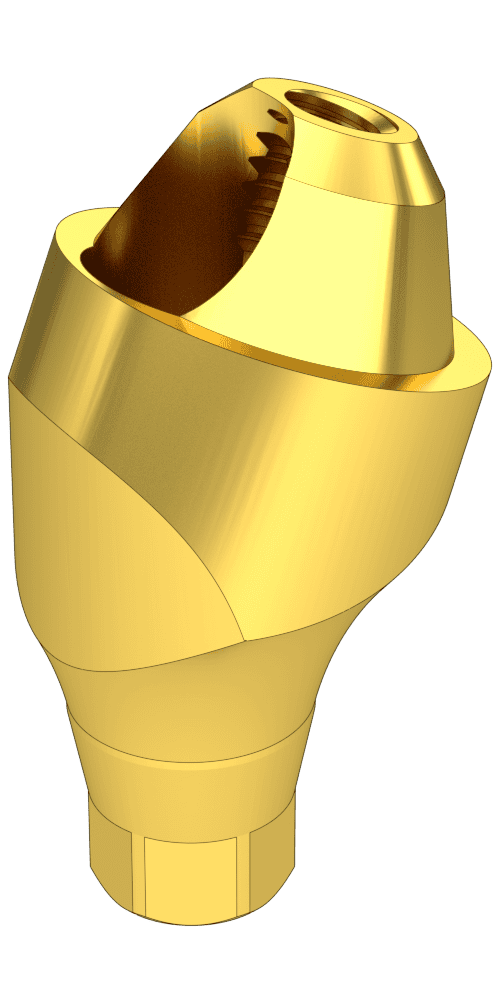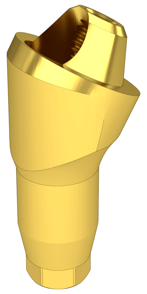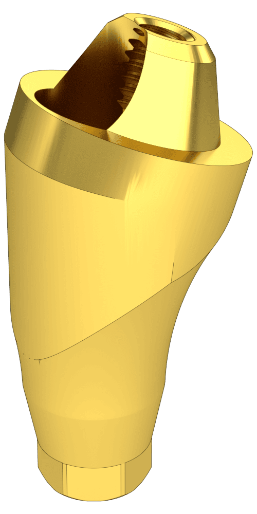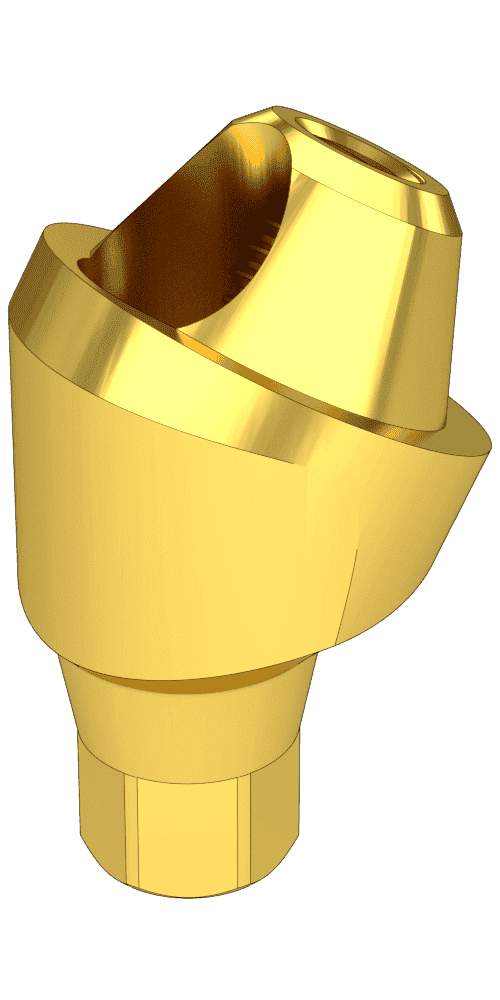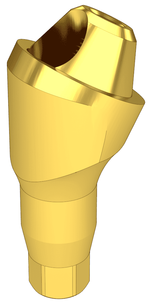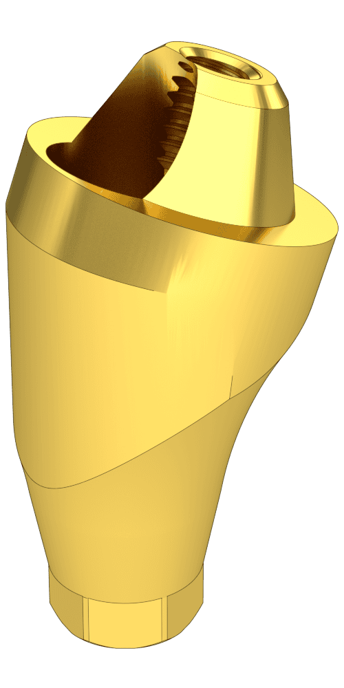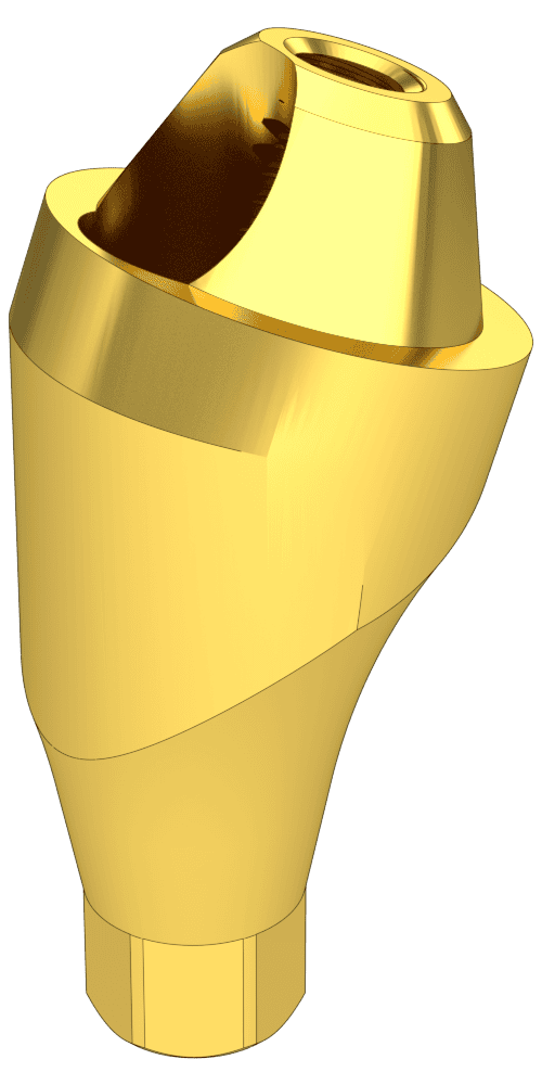 An intermediate piece designed for large angular misalignments (20°/30°). It can be fixed to the implant with a retainer screw and the prosthesis can be fixed to the screw thread in the abutment cone with a Multi-unit abutment screw.