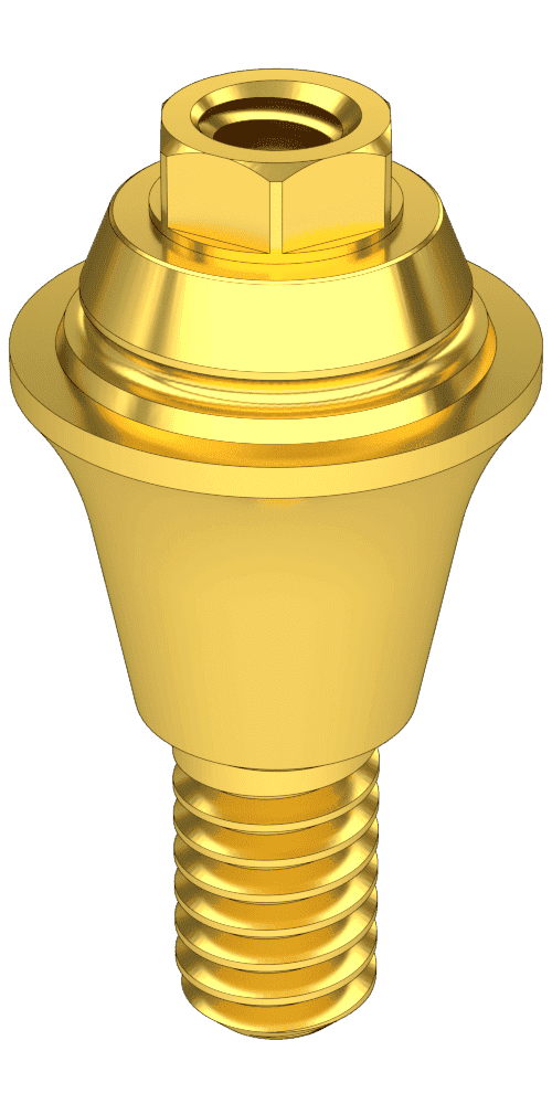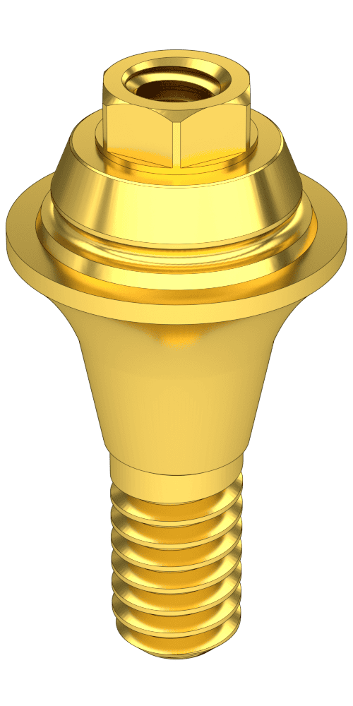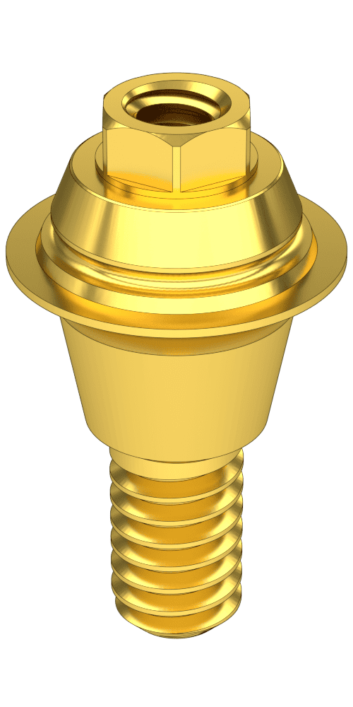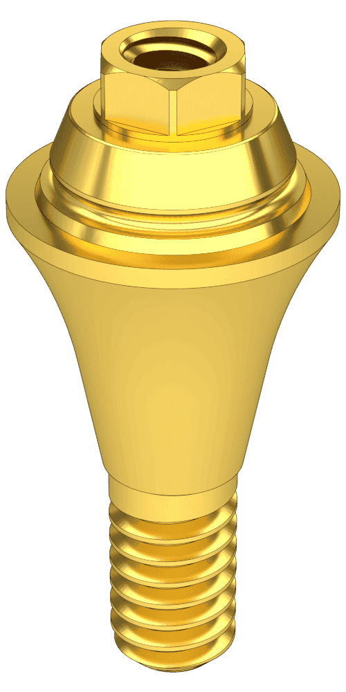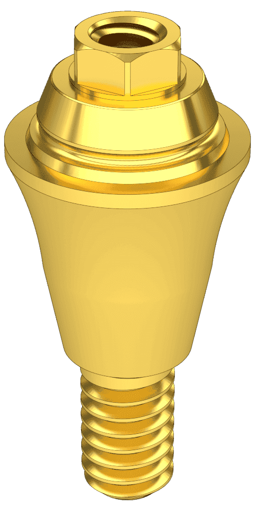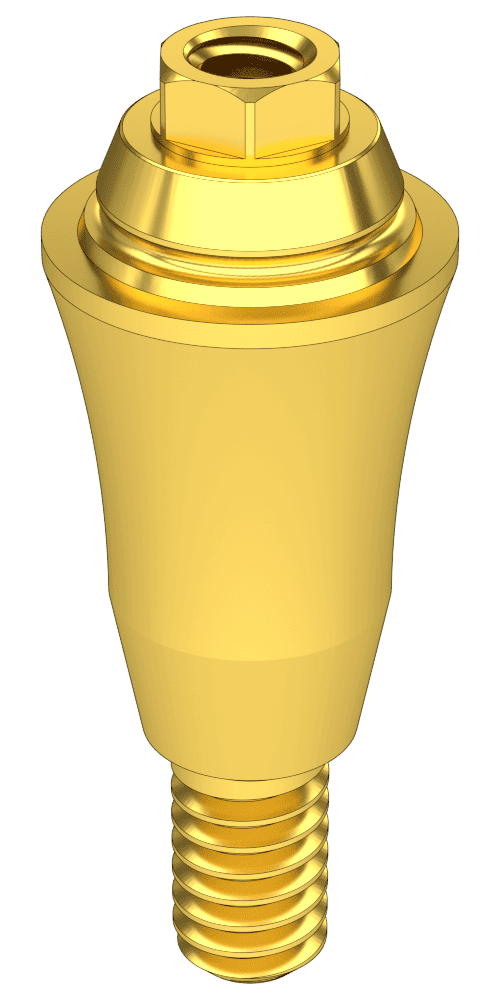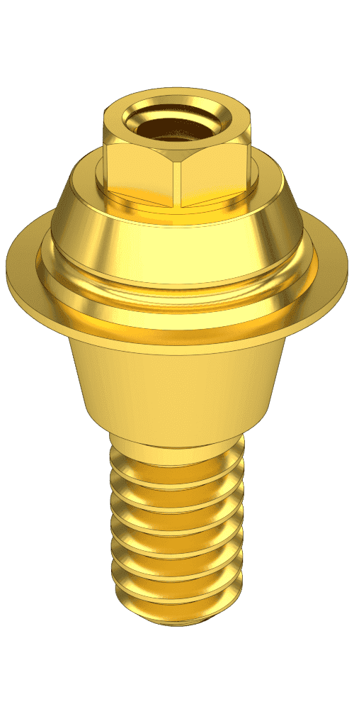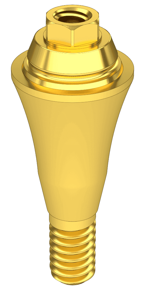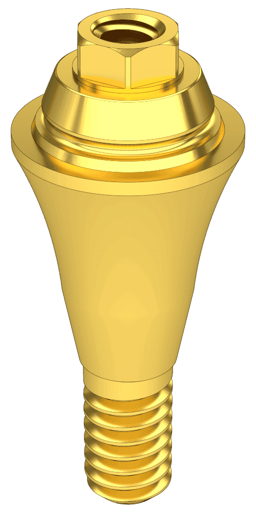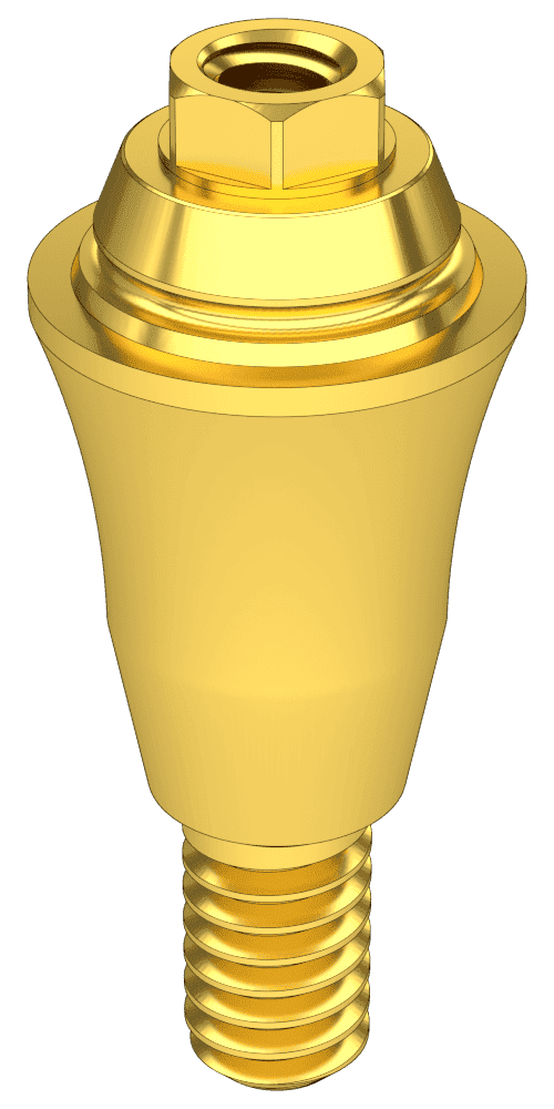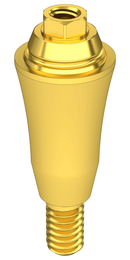 Thanks to the low tapered head section, even paracentrically positioned implants can be fixed with a precise fit and the denture is fixed with a screw.