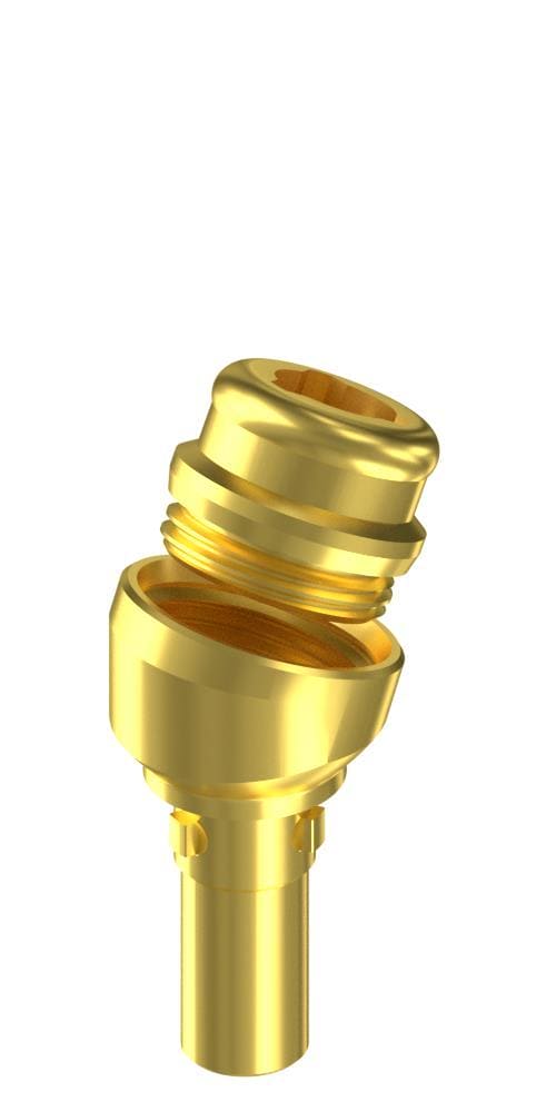 For large angular misalignments (20°/30°). The abutment's body consists of two parts, the so-called cup and the screwable tapered head section. The denture may be fixed to the abutment cone's screw thread with a Multi-unit headscrew.