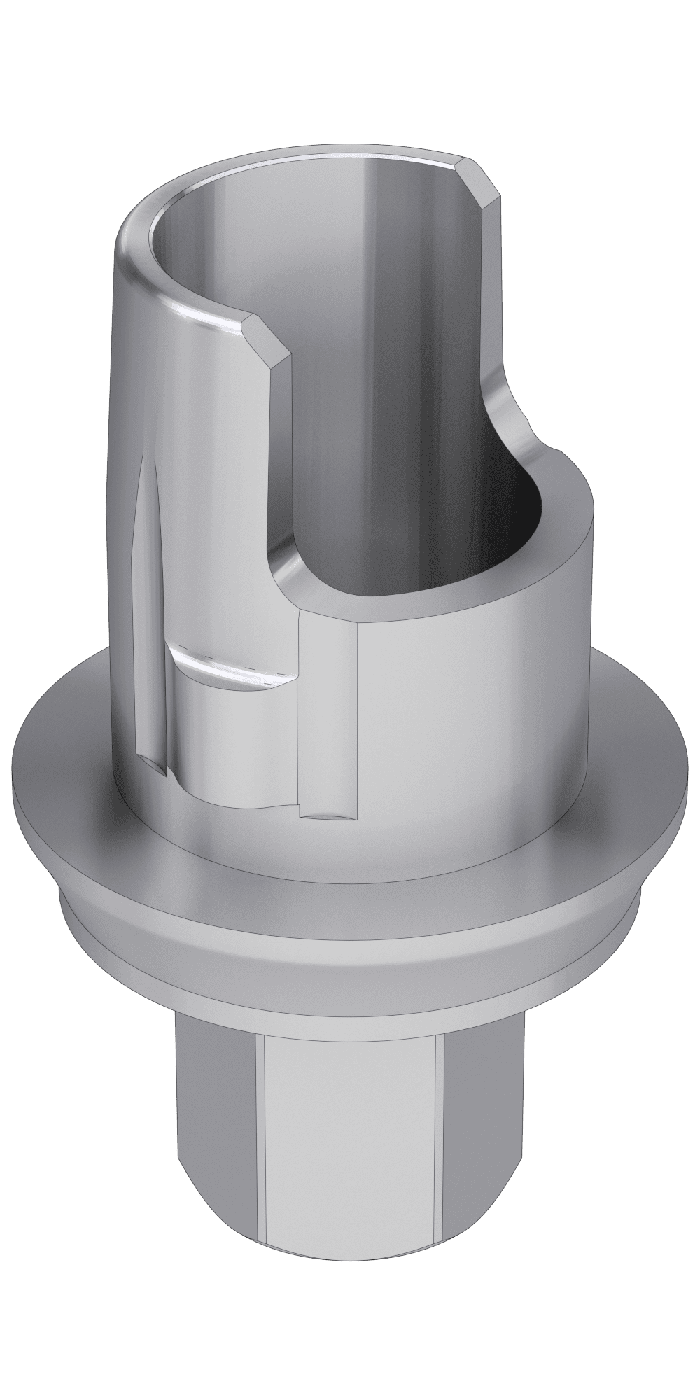 It ensures a precise connection between the implant and the denture if the material of the denture does not provide sufficient stability. Typically used for plastic and zirconium dentures. Thanks to its stepped design, it can also be used for crowns with angled screw threads.