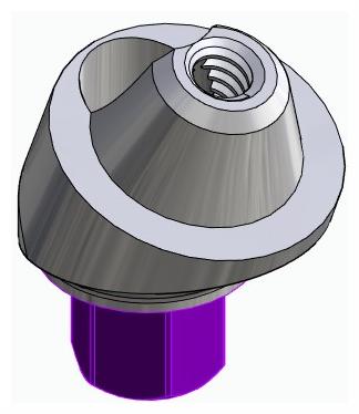 The M1.6 internal thread located at the top of the abutment enables the secure attachment of various prosthetic components, such as screw-retained bridge frameworks or suprastructures. The bottom of the abutment connects to the multi-unit base via a geometry-based fit, without a retaining screw.