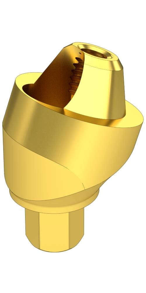An intermediate piece designed for large angular misalignments (20°/30°). It can be fixed to the implant with a retainer screw and the prosthesis can be fixed to the screw thread in the abutment cone with a Multi-unit abutment screw.