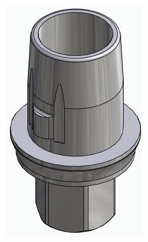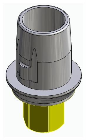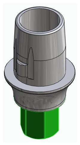 The Titanium base, positioned is a precision-machined titanium abutment base that connects directly to the implant and is designed for securing custom zirconia or metal-ceramic restorations. Its indexed design ensures that a specific point on the connection interface — such as a flat or notch — aligns identically during each reattachment, guaranteeing accurate and reproducible positioning of the restoration.