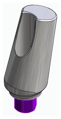 The Universal abutment, angled, positioned, type-A is an implant-level, prepable abutment designed for the fabrication of custom prosthetic restorations. Its angled geometry allows for correction of non-ideal implant angulation, while the prepable design enables precise adjustment in clinical or laboratory settings to meet anatomical and aesthetic requirements.