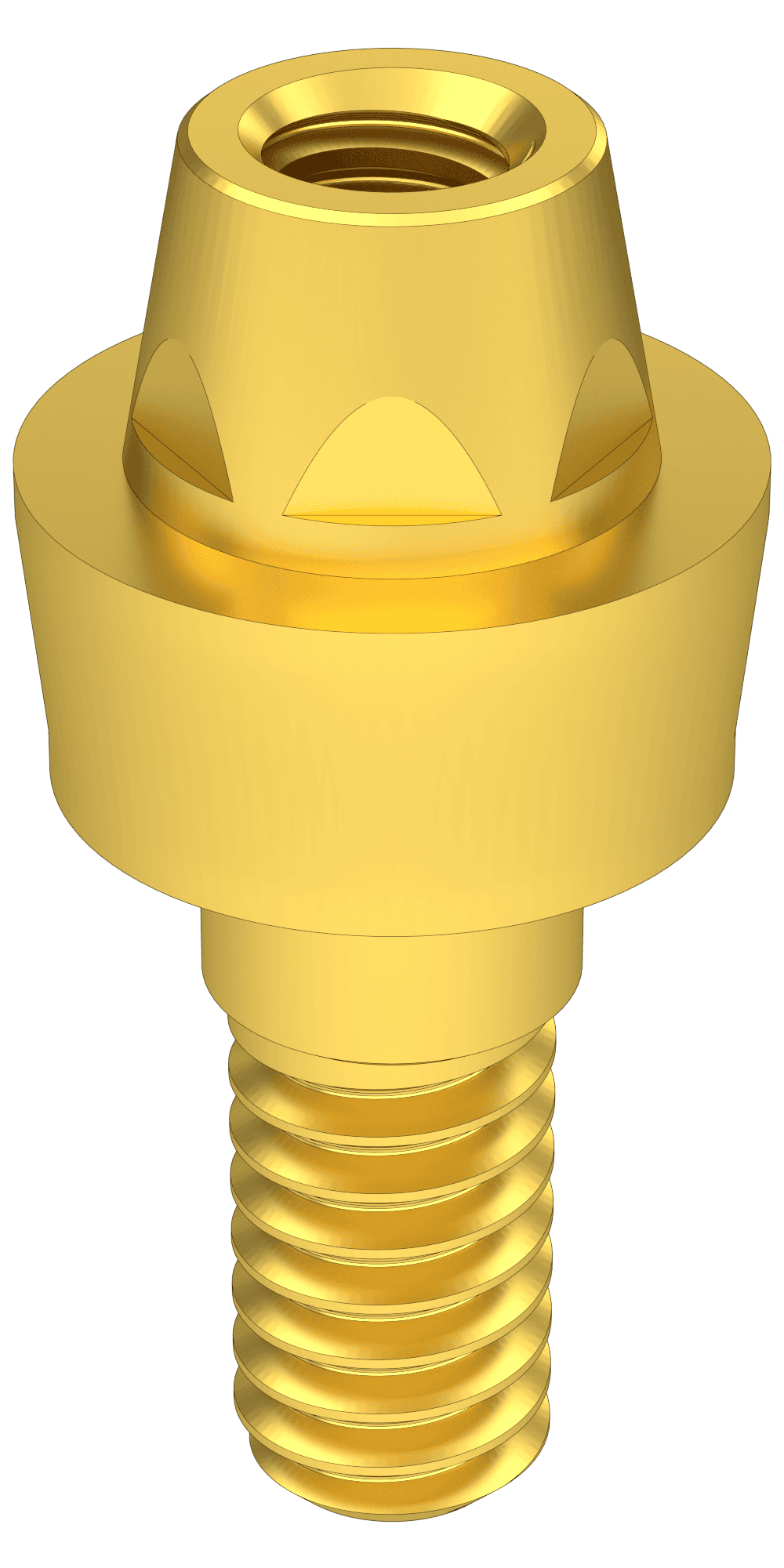 Thanks to the low tapered head section, even paracentrically positioned implants can be fixed with a precise fit and the denture is fixed with a screw.