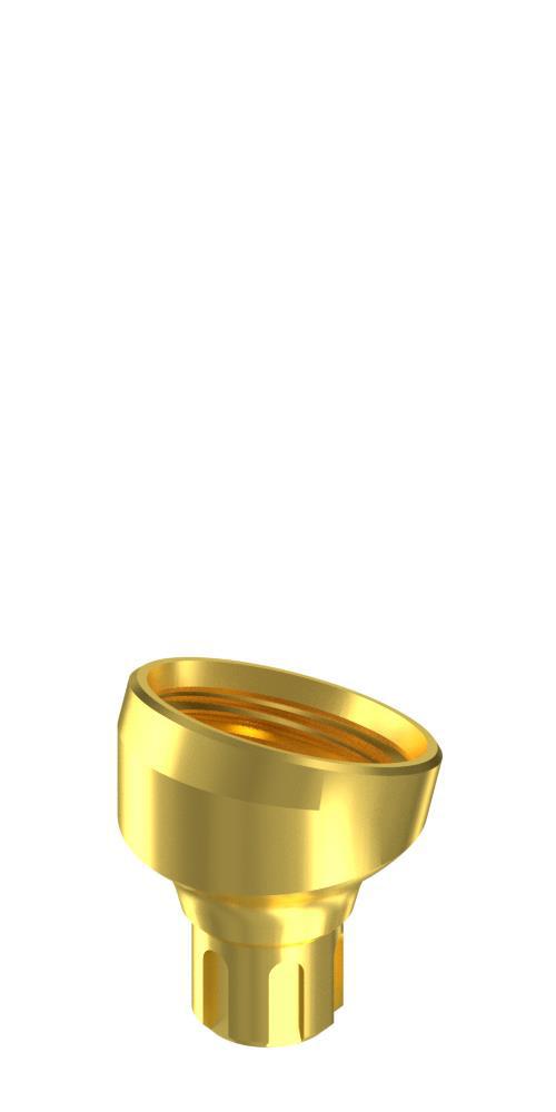 For large angular misalignments (20°/30°). The abutment's body consists of two parts, the so-called cup and the screwable tapered head section. The denture may be fixed to the abutment cone's screw thread with a Multi-unit headscrew.